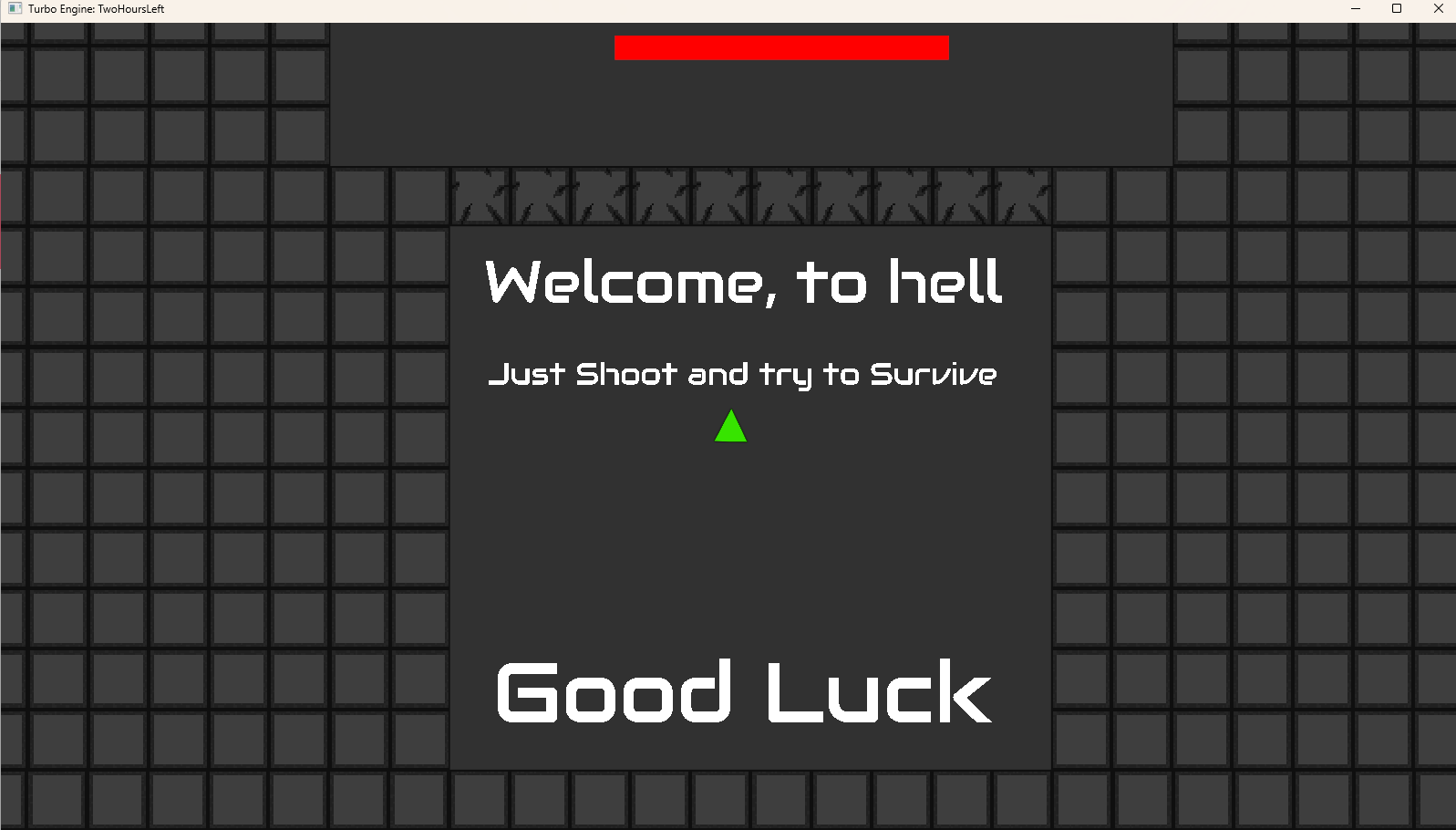TwoHoursLeft was made in 2 Days in My own GameEngine and is a basic 2D Shooter it contains 1 Level and some sick effects. Tell me if you killed the end Boss (dont expect any wining animations my engine does not support that)