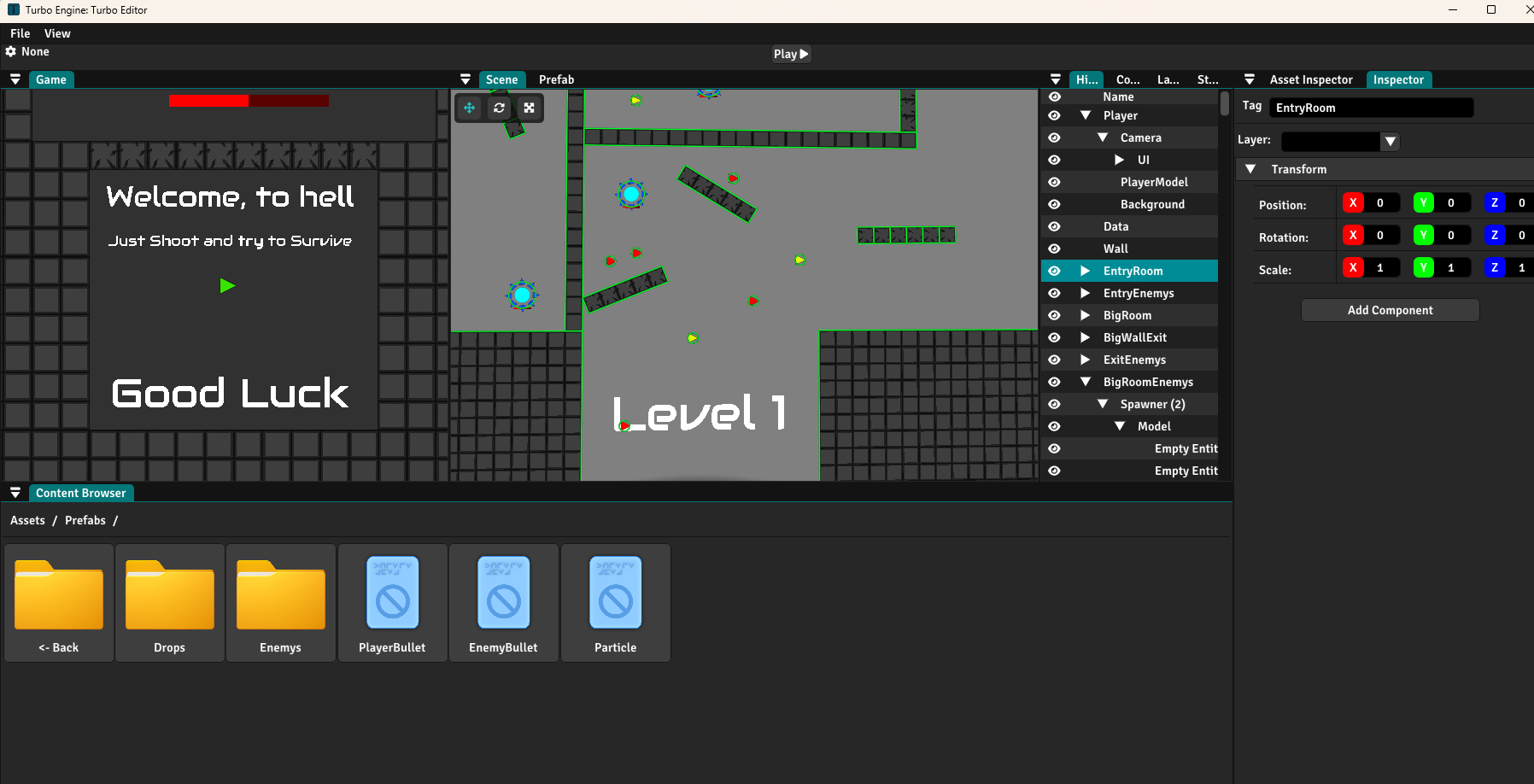This project was mainly an experiment to see what I could build in a very short time. TurboEngine isn’t quite ready for full-scale games yet, but I decided to push it anyway and turn it into something playable.
